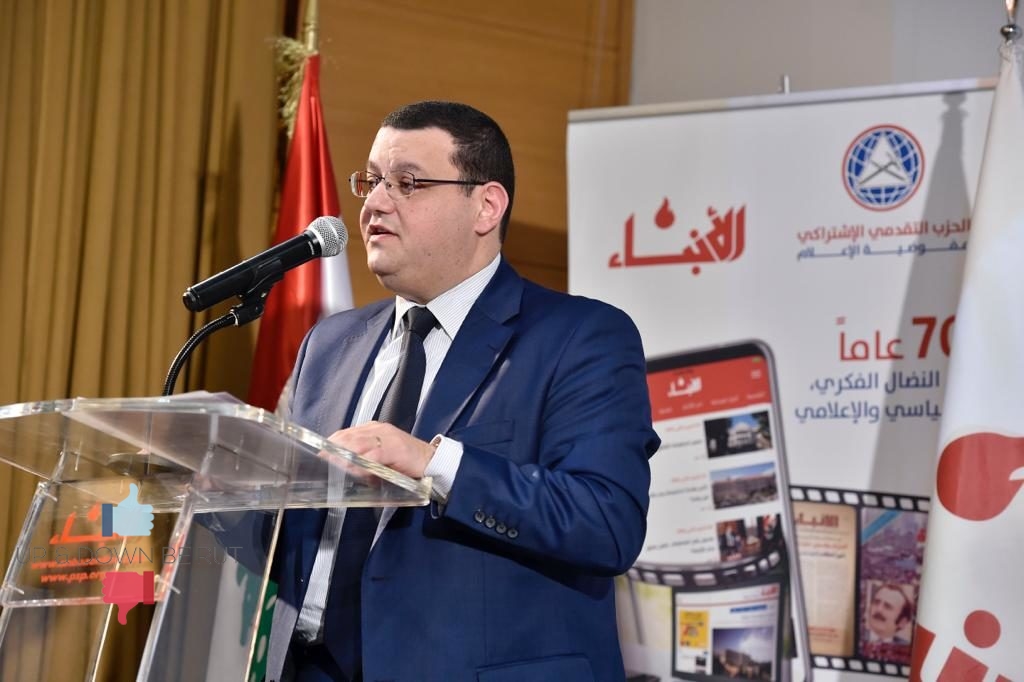 واضاف “أودّ أن أشكر كلْ فريق جريدة “الأنباء” ومفوضية الإعلام في الحزب التقدمي الاشتراكي الذين حققوا تحولاً نوعياً في العملِ الإعلامي الحزبي رغم كل الصعوبات التي تواجه الإعلامَ اللبناني. وأَودّ أن أشكر أيضاً رؤساء التحرير السابقين الذينَ توّلوا إصدار الجريدة في أصعب الظروف وهم: الأستاذ عزت صافي، الأستاذ عزيز المتني والأستاذ رشيد حسن وواكبوا حَقَبَةَ المعلم كمال جنبلاط”.