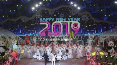 السماء في هونغ كونغ تضيء بالألعاب النارية أثناء احتفالات الصين بالعام الجديد.