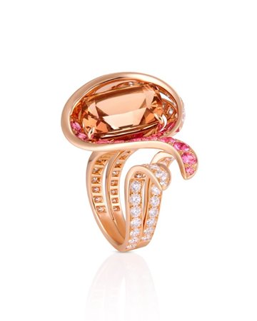 لجامعات القطع الفريدة، أبدعت FENDI ثلاثة خواتم كوكتيل بألوان تلتقط وهج غروب روما على سطح الماء: من خاتم Alba المشتعل بالتوباز البرتقالي، إلى Carmina بلونه الوردي الزاهي، وصولاً إلى Esperidi المتألق بالأصفر المضيء.