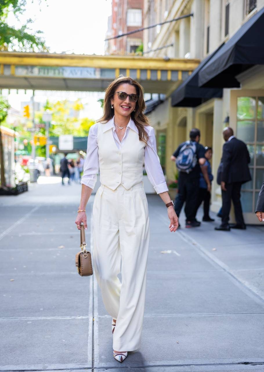 تُعرف الملكة رانيا بذوقها الرفيع الذي يجمع بين الكلاسيكية العصرية واللمسات الجريئة. وفي إطلالاتها الرسمية أو حتى المناسبة لأيام العمل أو الزيارات الاجتماعية، تظهر البدلة كخيار بارز ومتكرّر، لكن بأسلوب لا يشبه أحداً سواها.