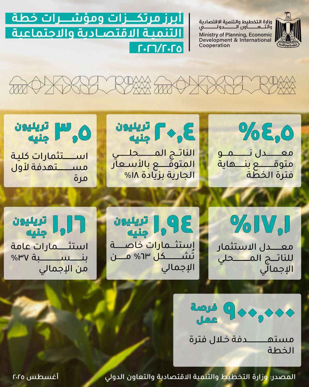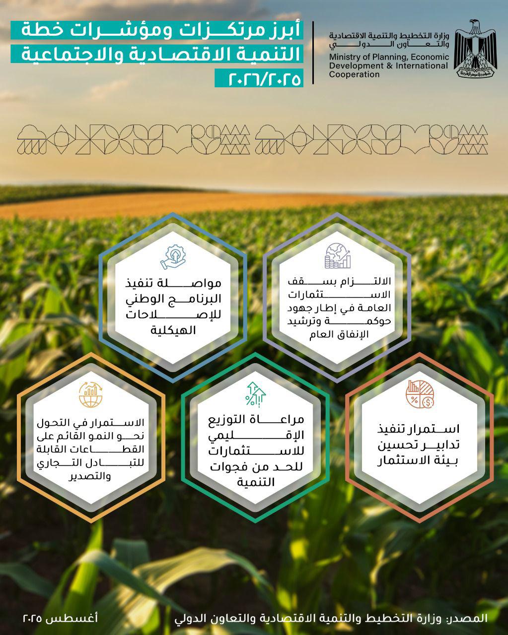The Ministry of Planning, Economic Development and International Cooperation announced the pillars of the 2025/2026 Economic and Social Development Plan, which officially began implementation last July. This comes at a time when the Egyptian state is seeking to continue its development path amid consecutive regional and international challenges.