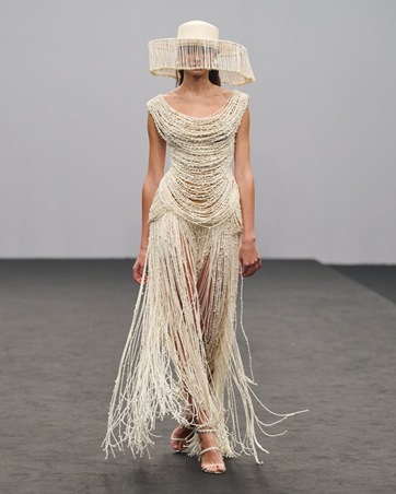 تجذب الأنظار بتطريزات الأزهار الناعمة، الحواف المزدانة بالكريستال، وطبقات الأورجانزا التي تنسدل بخفة. ما ميّز العرض أيضاً أنه لم يكن مجرد استعراض أزياء، بل كان حوارا بصريا بين التراث العربي واللمسات العالمية.