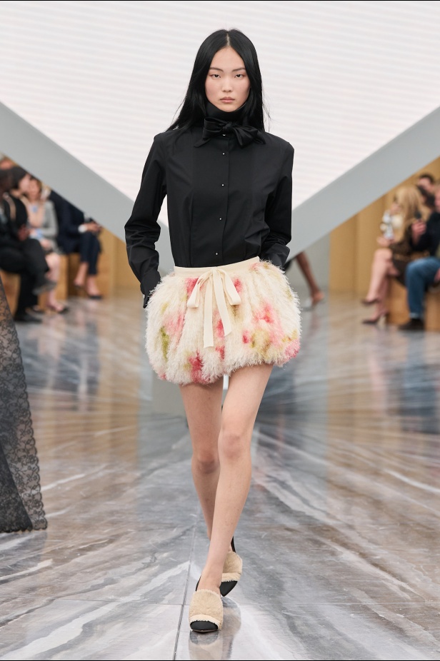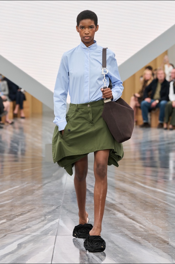 ومع ذلك، ظل هاجس البنية قائماً. الصور الظلية المستوحاة من الـpanniers حملت رمزية واضحة، لكنها لم تعكس دائماً ثِقل الحِرفة التي بنت هوية دار تمتد جذورها لثمانية عقود من الأزياء الراقية. فـ”ديور” شُيّدت على صرامة البناء، وفي بعض اللحظات بدت الخفة كأنها تهدد هذا الأساس.