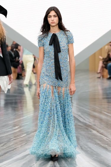 سترة البار وتايورات ديور الأيقونية تتخذ أبعادًا جديدة مع تنورة بليسية قصيرة باللون الأخضر الداكن المغبر، وسترة بار قصيرة مع ياقة سوداء فضفاضة من الخلف لتخلق حركة، وكأن سترة البار كانت جامدة من قبل، ليواصل المصمم استحضار الأيقونات مع تصاميم الدانتيل التي أعادتنا إلى فترة جاليانو مع فساتين تليق بالسجادة الحمراء تنسدل طويلة شفافة مع خلفية بارزة تبدو كأجنحة الفراشات هذا الشغف بتصميم قطع تبدو من الأمام كلاسيكية لكنها تضم تفاصيل مبتكرة من الخلف يكشف عن أسلوب استفزازي غامض لأندرسون الذي لا يعرف الكلاسيكية المجردة.