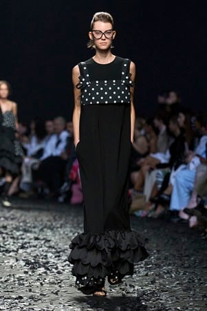 تظهر النقشة في المجموعة بطرق متجددة وغير متوقعة؛ فالنقاط الكبيرة تزيّن المعاطف بتصاميم نحتية لافتة، بينما تُطرَّز بدقة على الأقمشة الشفافة أو تُنسج داخل خامات الجاكار الفاخرة بدرجات لونية متناغمة. النتيجة هي توازن بصري محسوب يدمج بين البنية الصارمة واللمسة الإبداعية الحرة.