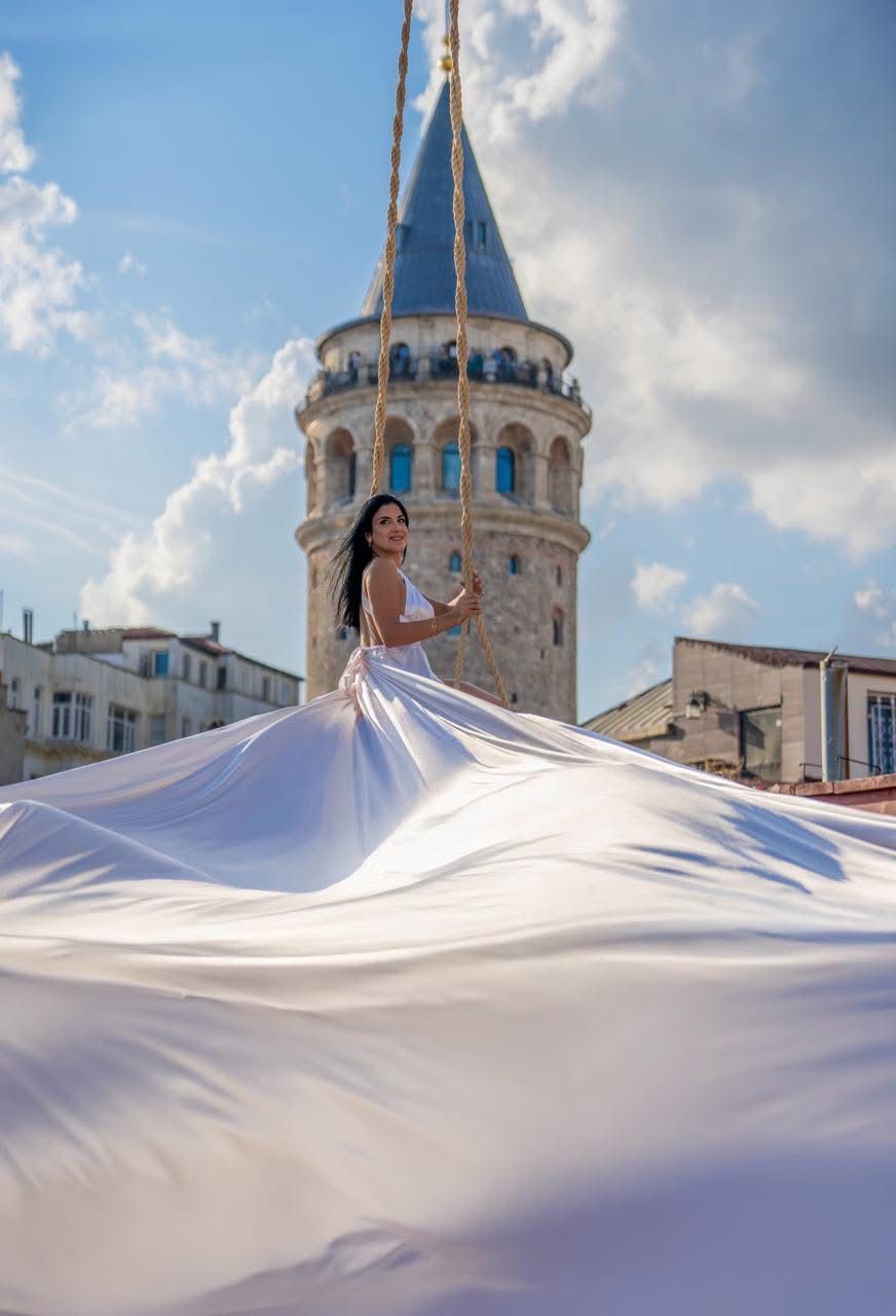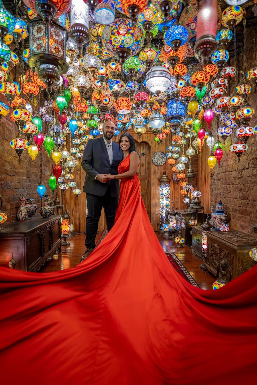 كما التقطا صور الزفاف في مواقع مطلّة من إسطنبول، حيث تألقت العروس بإطلالتين أنيقتين باللون الأبيض، ثم بإطلالة ساحرة باللون الأحمر في جلسة After Wed، فبدت كالأميرة بجمالها ودلالها.