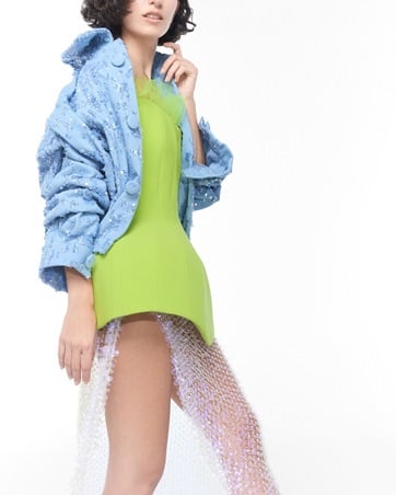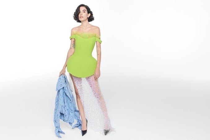 تتداخل الخامات هذا الموسم في حوار مليء بالمرح والابتكار: خامات تشبه الرافيا تتلاقى مع تطريزات دائرية وأشكال تشبه نثرات الكونفيتي، بينما يضيف الدنيم الممزق والترتر السائل لمسة فوضى أنيقة ومفعمة بالحيوية. كل إطلالة تبدو كما لو كانت لحظة بين التمرد والانطلاق، أنيقة لكنها غير مقيّدة، تحتفي بروح الفردية التي تميز الجيل الجديد.
