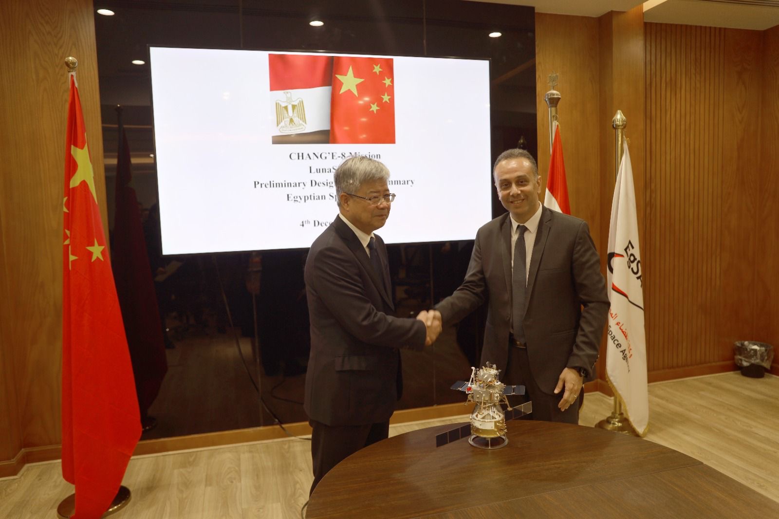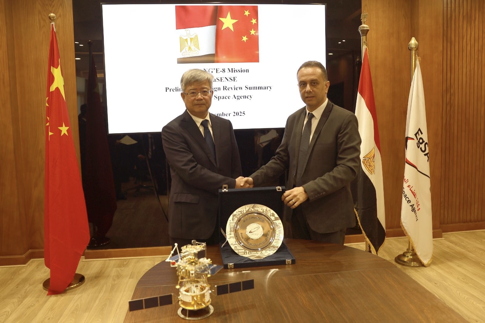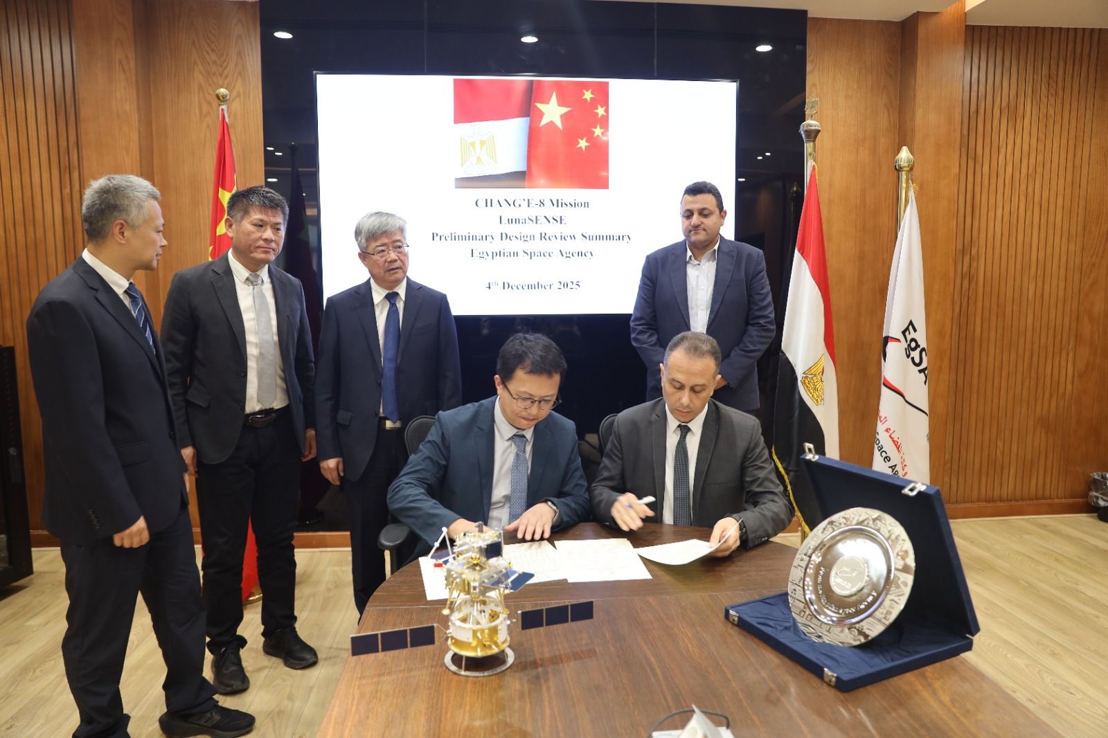 في خطوة تعكس صعود مكانة مصر الإقليمية والدولية في مجال علوم واستكشاف الفضاء، شهدت وكالة الفضاء المصرية اليوم الخميس 4 ديسمبر 2025 اجتماع مراجعة مرحلة التصميم المبدئي الخاص بالحمولة علي متن مركبة الهبوط القمرية الصينية تشانج-٨ مع وكالة الفضاء الصينية، وذلك خلال زيارة وفد رفيع المستوى .