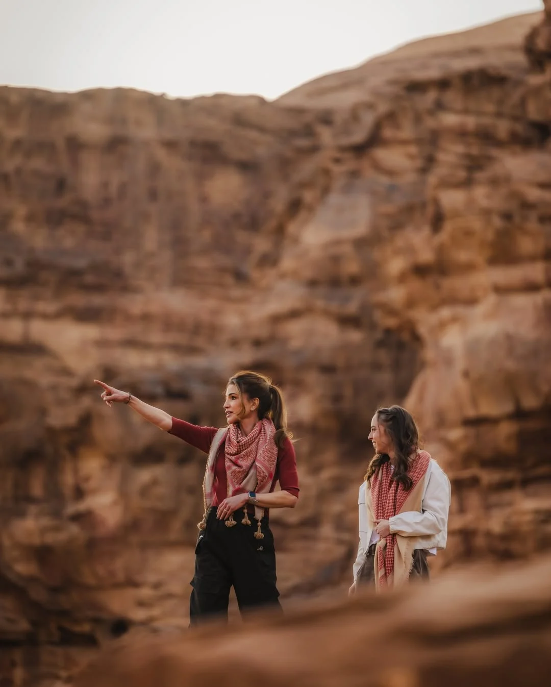 شاركت الملكة رانيا العبدالله مجموعة صور من رحلتها برفقة الأميرة سلمى إلى وادي رم في الأردن، وعلّقت عليها بالقول: “مع سلمى في وادي رم، قلب الجنوب الأردني… جمال لا يقارن بأي بقعة على وجه الأرض”.