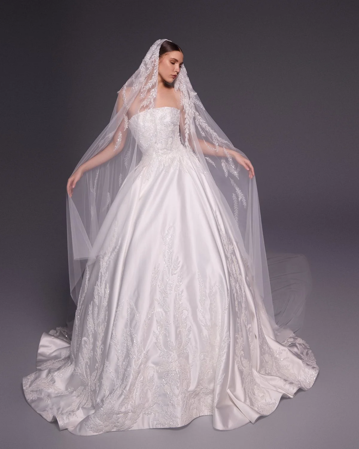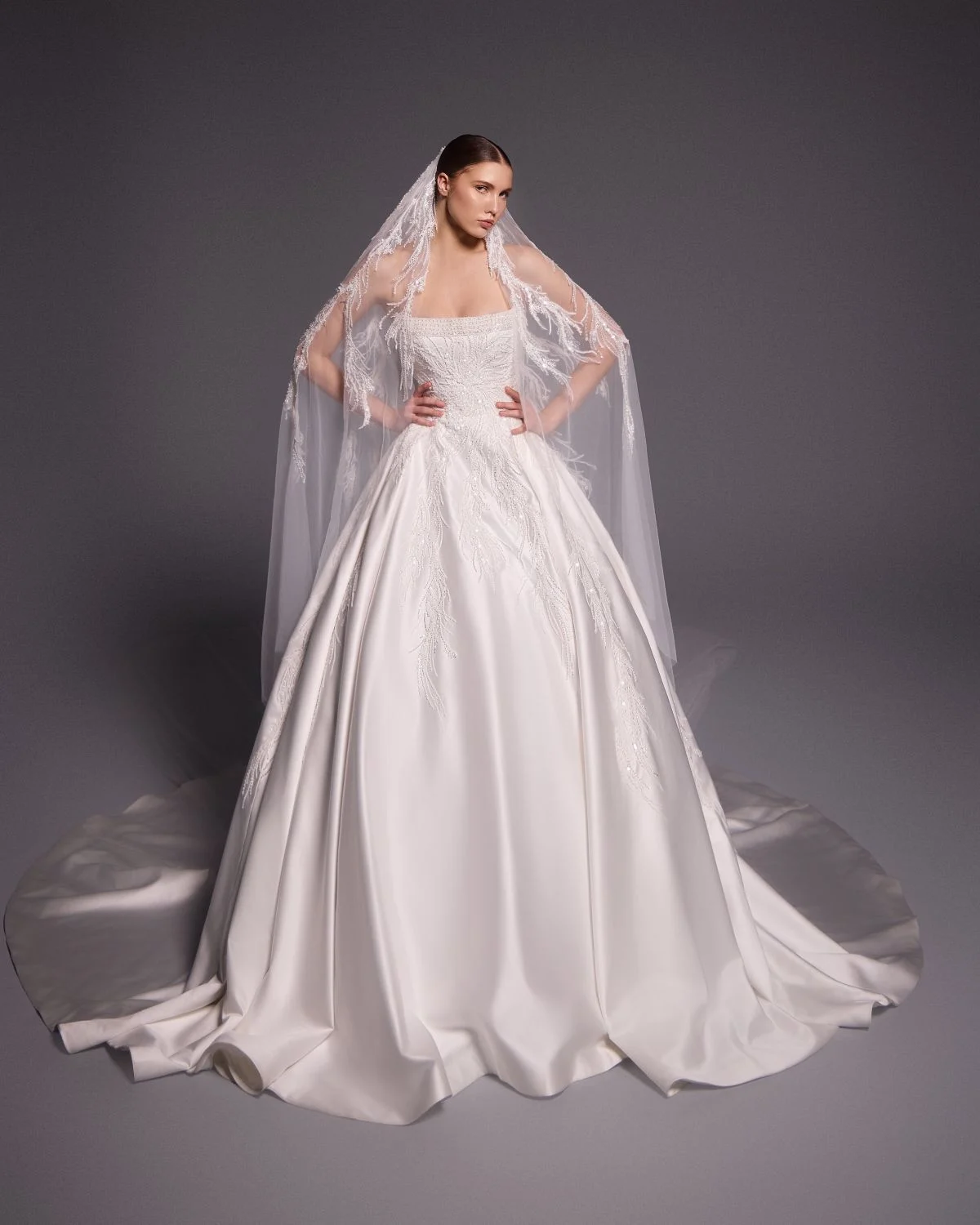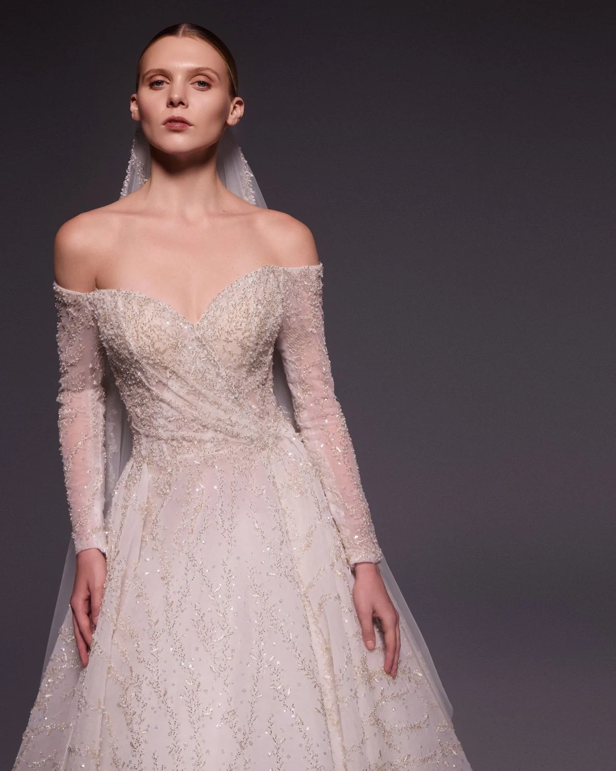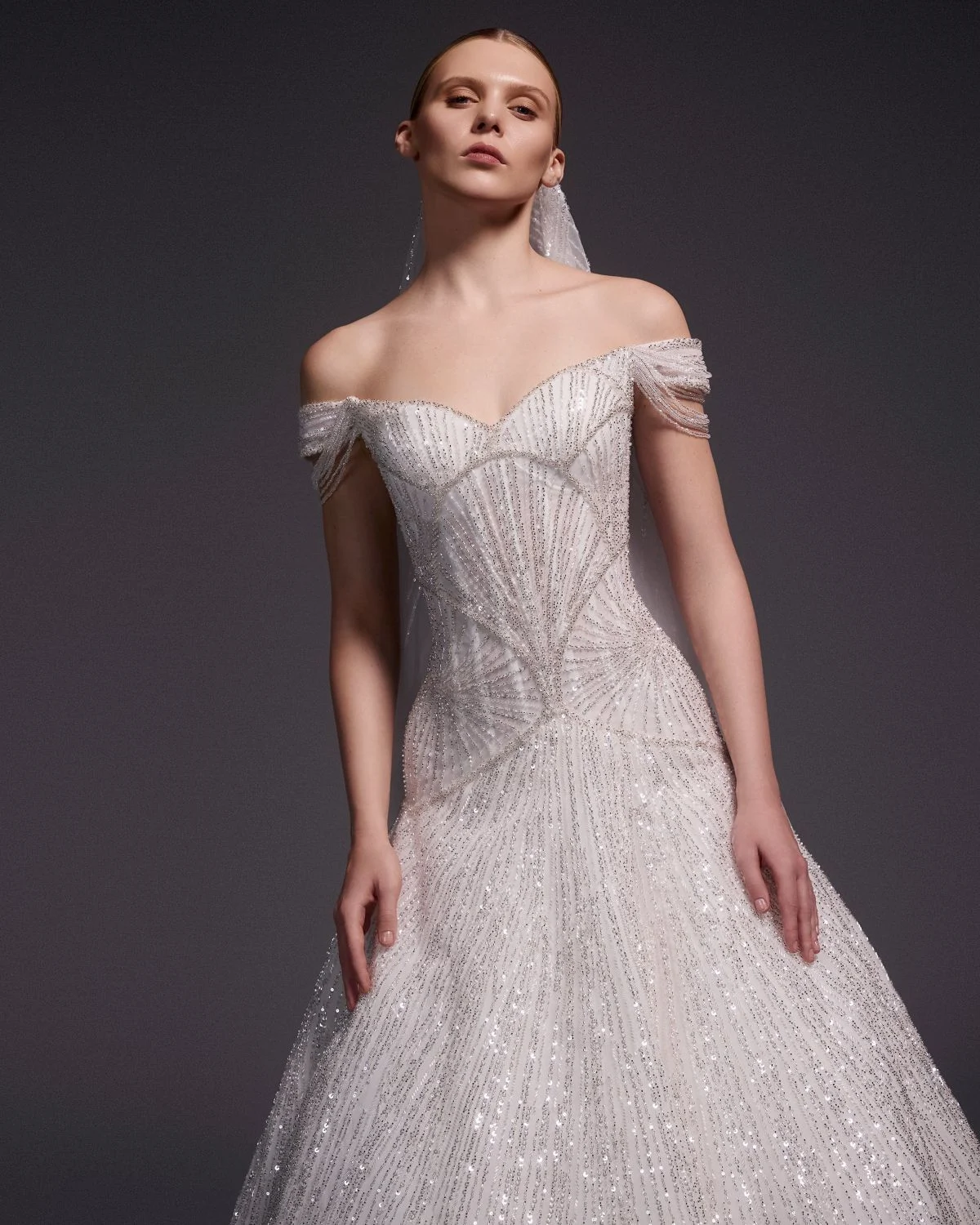 وقد أضفت حبيبات الكريستال وحبال الشارلستون لمسة لامعة على التصاميم، عزّزت من فخامة الفساتين مع الحفاظ على نعومتها ، ولم يغِب “الكاب” عن المجموعة ليمنح العروس طابعاً خاصاً يعكس شخصيّة قويّة وأناقة خالدة.
