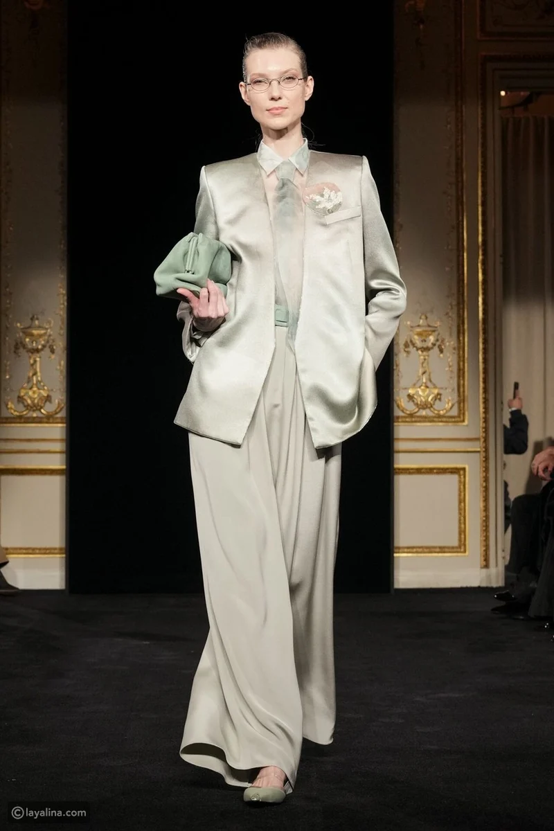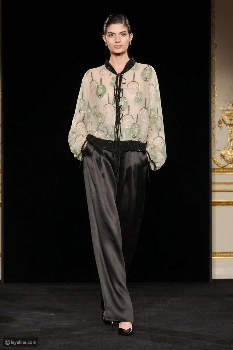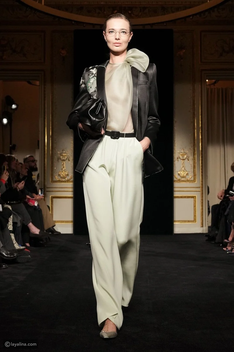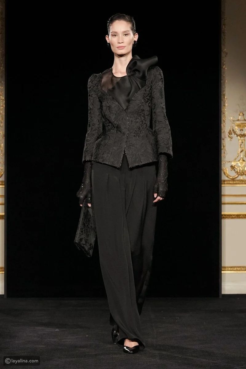 - قلّ عدد الفساتين، وتقدّم ملابس النهار إلى الواجهة، وهو اختيار نادر في عالم الهوت كوتور، هنا، تُقاس الفخامة بمدى الثقة التي تمنحها القطعة لمرتديتها، لا بكمّ البريق.