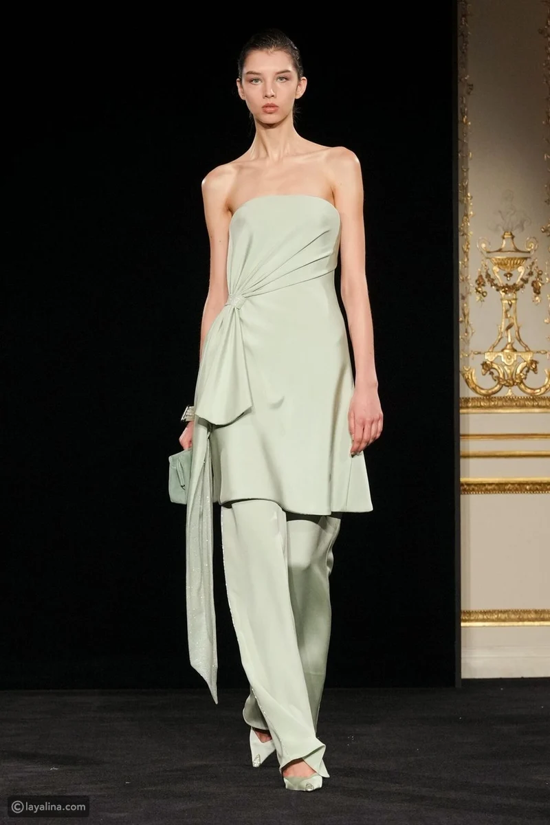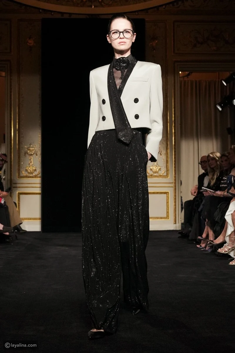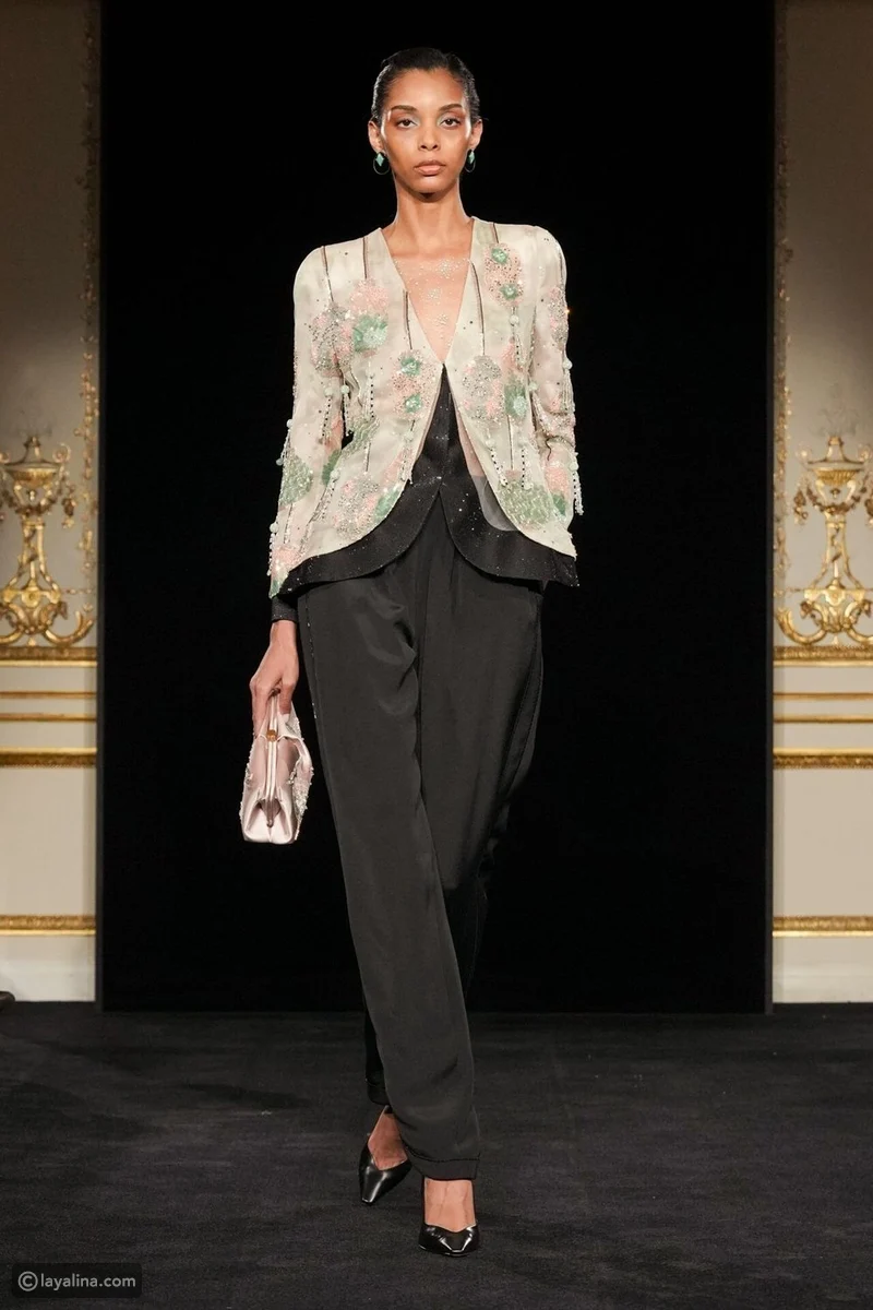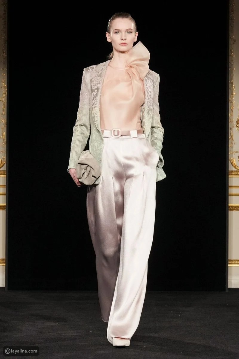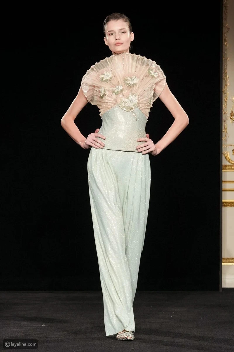 - قلّ عدد الفساتين، وتقدّم ملابس النهار إلى الواجهة، وهو اختيار نادر في عالم الهوت كوتور، هنا، تُقاس الفخامة بمدى الثقة التي تمنحها القطعة لمرتديتها، لا بكمّ البريق.