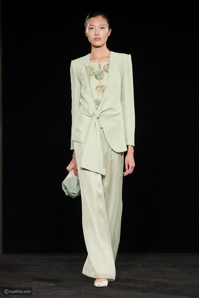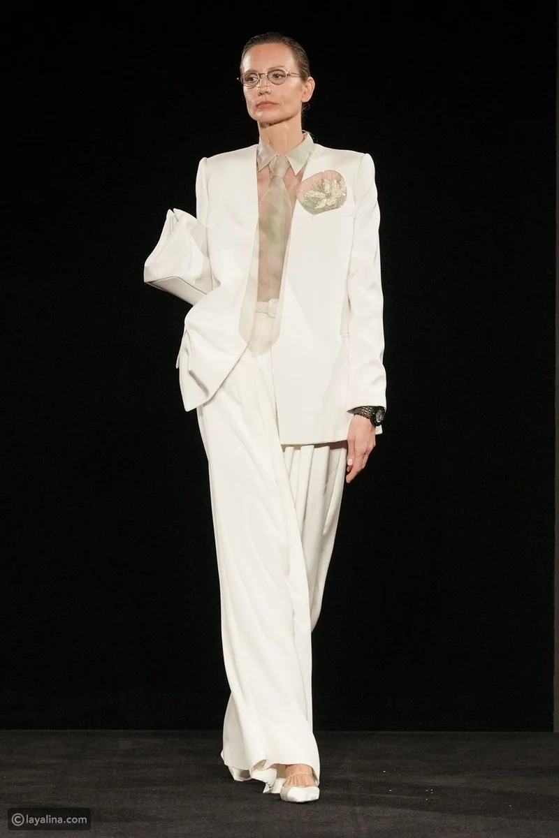 - وعندما ظهرت لمحة ذكورية، جاءت كـتوازن مدروس لا كتصعيد، بدت كصدى معكوس لنهج جورجيو أرماني في المواسم الأخيرة، حيث كانت الأنوثة تتسلّل إلى الخياطة الرجالية. هنا، تعود الثنائية إلى انسجامها الطبيعي.
